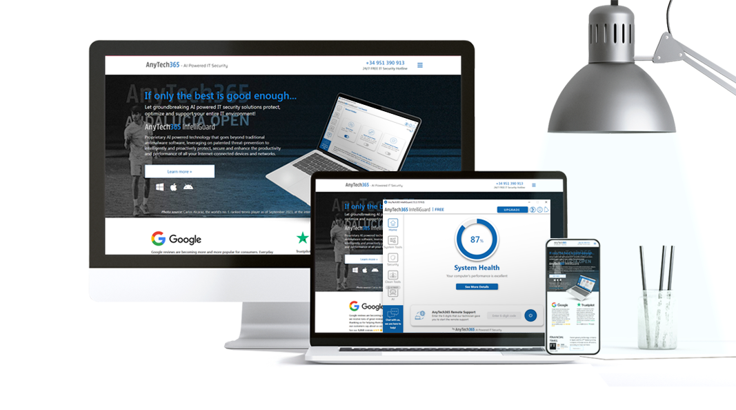Our proprietary AnyTech365 IntelliGuard uses AI for a digital peace of mind, while AnyTech365 Security and AnyTech365 SecureRouter provide advanced anti-malware protection and network encryption for enhanced privacy.
